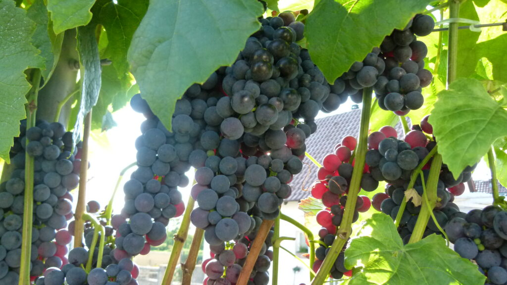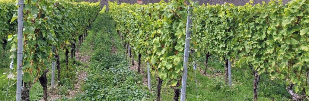 Рисунок 1. В Израиле виноградные кусты предпочитали сажать на склонах, так как ровные поля использовались для выращивания зерновых. Корни виноградных кустов иногда проникали более десяти метров вглубь в каменистый слой земли и обеспечивали урожай даже в засушливые периоды (Фото: виноградник в Вюрцбурге, Л. Люфт, сентябрь 2025 года).